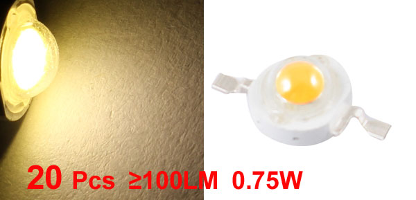 20 Pcs 0.75W High Power 100LM 2 Pin Warm White Light LED Lamp Diodes Blub Beads