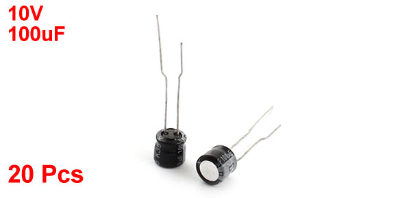 Product Name Electrolytic Capacitor Type Radial Voltage 10V Capacitance 100uF Size 6 x 5mm/0.24" x 0.2"(D*H) Lead Space 2mm Lead Length 21mm/0.8", 26mm/ 1" External Material Aluminum Total Net Weight 9g Main Color Black, Silver Tone Package Content 20Pcs x Electrolytic Capacitors - Reviews