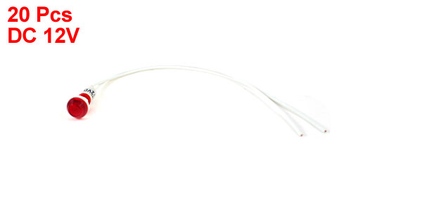 Details20 Pcs 10mm Hole 2 Wire Cable Red Indicator Pilot Light Lamp DC 12V  Product Name Indicator Light Light Type Blub Working Voltage DC 12V Mounting Hole Dia 10mm/0.39" Light Color Red Body Size 3.3 x 1.4cm / 1.3" x 0.55"(L*Max.D) Cable Length 21cm / 8.3" Weight 82g Package Content 20 x Indicator Lights