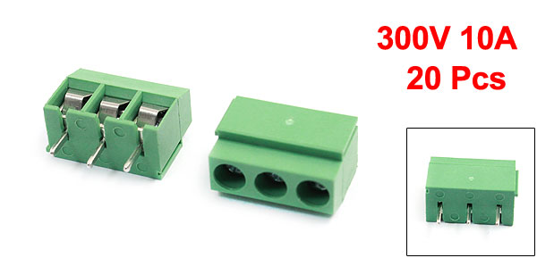 20 Pcs 126-3P 3Pin 5mm Pitch Screw Terminal Block 300V 10A