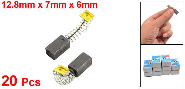 Product Name Carbon Brush Material Carbon, Metal Color Dark Gray, Gold Tone Each Carbon Brush Size 12.8 x 7 x 6mm/ 0.5" x 0.27" x 0.23" (L*W*T) Each Total Length(Approx) 35mm/ 1.4" (When Spring Stretching) Total Weight 29g Package Content 20 x Carbon Brushes - Reviews