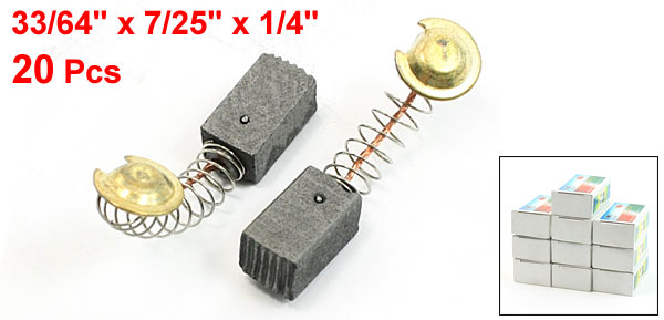 Product Name Carbon Brush Carbon Brush Size (Approx) 13 x 7 x 6.5mm / 33/64" x 7/25" x 1/4"(L*W*T) Wire Length 25mm / 1" Material Carbon, Copper, Metal Main Color Dark Gray Net Weight 82g Package Content 20 Pcs x Carbon Brush - Reviews