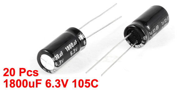 20 Pcs 1800uF 6.3V 105C Radial Electrolytic Capacitors Black 8x16mm