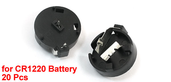Product Name Button Battery Holder Fit Battery Model for CR1220 Battery (Not Included Here) Material Plastic, Metal Available Battery Quantity 1 Body Size 14 x 4mm / 0.6" x 0.2"(Max D*H) Inner Diameter 12mm / 0.79" Pin Quantity 2(1 for "-", 1 for "+") Distance Between Pins 8mm / 0.31" Color Black Net Weight 13g Package Content 20 Pcs x Button Battery Holder - Reviews