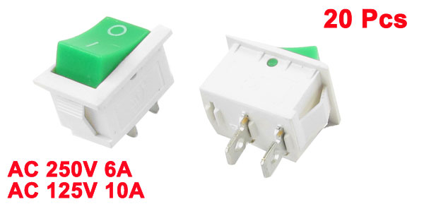 Total Size(Each One) 21 x 15 x 25mm/ 0.83" x 0.6" x 1"(L*W*T) Mounting Size 19 x 13 x 20mm/ 0.75" x 0.51" x 0.8"(L*W*T) Color White, Green Material Plastic, Metal Total Weight 66g Package Content 20 x Rocker Switch - Reviews