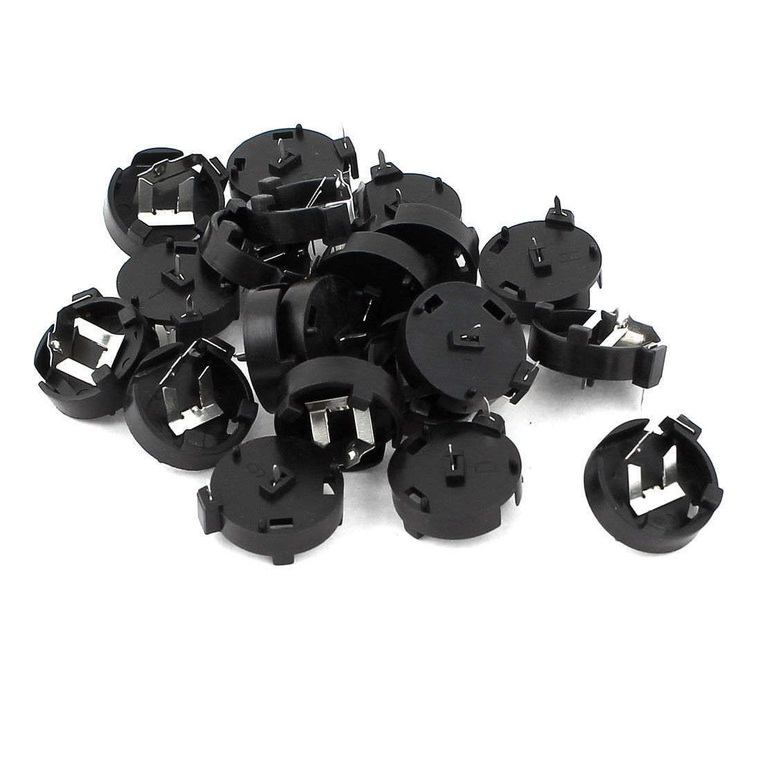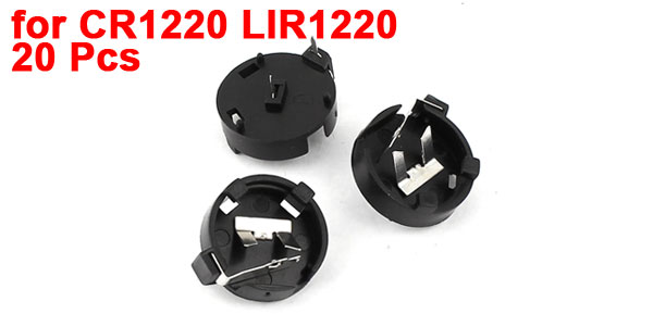 Product Name Button Battery Holder Fit Battery Model CR/LIR1220 (Not Included Here) Material Plastic, Metal Available Battery Quantity 1 Body Size 15 x 5mm / 0.6" x 0.2"(Max D*H) Inner Diameter 12mm / 0.79" Pin Quantity 2(1 for "-", 1 for "+") Distance Between Pins 8mm / 0.31" Color Black,Silver Tone Net Weight 13g Package Content 20 Pcs x Button Battery Holder - Reviews
