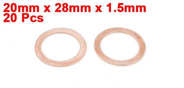 Product Name Copper Washer Total Size 20 x 28 x 1.5mm/0.8" x 1.1" x 0.06"(Inner Dia*OD*T) Material Copper Color Copper Tone Net Weight 74g Package Content 20 x Copper Washers - Reviews
