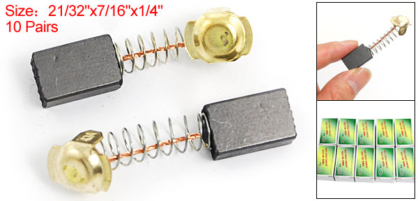 Product Name Motor Carbon Brush Fit for Generic Electric Motor Carbon Brush Size 21/32" x 7/16" x 1/4" (L*W*H) Total Length(Approx) 5cm/ 2" (When Spring Stretching) Net Weight 61g Package Content 10 Pairs x Motor Carbon Brush - Reviews