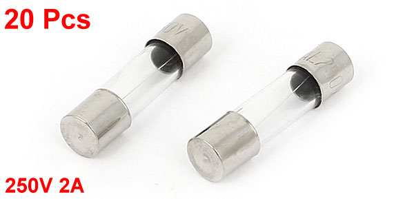Product Name Glass Tube Fuses Quantity 20 Features Fast Blow(F) Low Breaking Capacity(L) Rated Voltage 250V Rated Current 2A Body Size 5 x 20mm/ 0.2" x 0.8"(D*L) Material Glass, Metal Color Silver Tone, Clear Weight 13g Package 20 x Glass Tube Fuses - Reviews