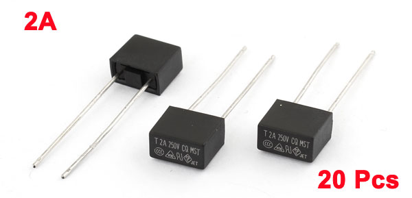 20 Pcs 250V 2A Radial Leads Slow Blow Type DIP Square Micro Fuses