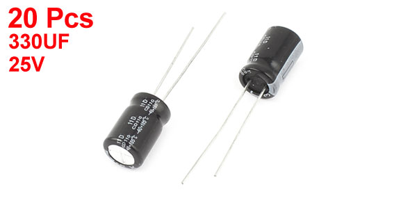 Product Name Electrolytic Capacitor Type Radial Leads Temperature Range -40~+105C Voltage 25V Capacitance 330uF Body Size 8 x 12mm/0.3" x 0.47"(D*H) Lead Space 3mm/0.12" Lead Length 22mm/0.85" , 26mm/1" External Material Aluminum Total Net Weight 20g Main Color Black Package Content 20 x Electrolytic Capacitors - Reviews