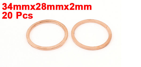 20 Pcs 28mm Inner Diameter 2mm Thickness Flat Copper Washer Seal Ring
