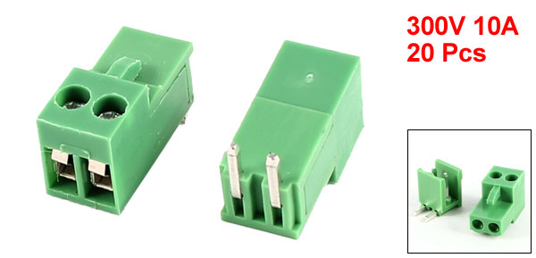 20 Pcs 2Pin 3.96mm Spacing PCB Screw Terminal Block Connector 300V 10A AWG14-26