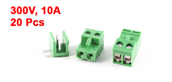 20 Pcs 2Pin 5.08mm Spacing PCB Screw Terminal Block Connector 300V 10A AWG14-26