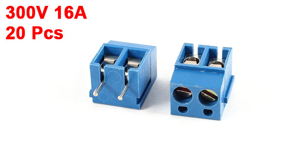20 Pcs 2Pin 5mm Pitch PCB Screw Terminal Block Connector 300V 16A AWG14-22 Blue