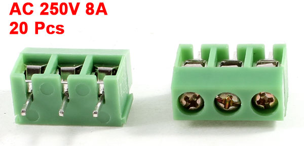 20 Pcs 3 Pin 5mm Pitch PCB Mount Screw Terminal Block AC 250V 8A