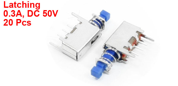20 Pcs 3 Pins DIP Hole Push Button Self Locking 0.3A DC50V Tact Switch