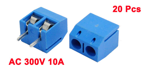20 Pcs 301-2P 5mm Pitch 2 Pin AC 300V 10A Blue Screw Terminal Blocks Connector