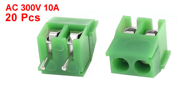 Product Name Screw Terminal Block Model KF350-2P Material Plastic Rated Value AC 300V, 10A Fit Cable Model 18-24AWG Pin Number 2 Pitch 3.5mm/0.14" Total Size 12 x 7 x 7mm/ 0.47" x 0.28" x 0.28" (L*W*H) Color Green Weight 17g Package Content 20 x 2P Screw Teminal Blocks - Reviews