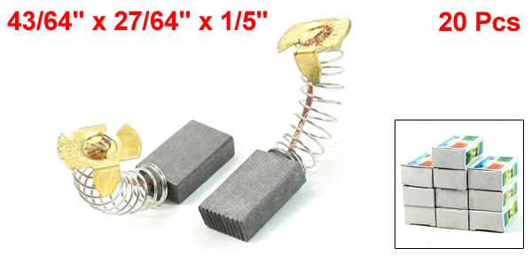Details20 Pcs 35mm Single Lead Wire 43/64" x 27/64" x 1/5" Motor Carbon Brushes  Product Name Carbon Brush Model No. CB-303 Carbon Brush Size (Approx) 17 x 11 x 5mm / 43/64" x 27/64" x 1/5"(L*W*T) Wire Length 35mm / 1.4" Material Carbon, Metal Main Color Dark Gray Net Weight 105g Package Content 20 Pcs x Carbon Brush