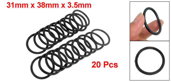 Product Name Rubber O Ring Material Rubber Inside Diameter 31mm/1.22" Outside Diameter 38mm/1.5" Thickness 3.5mm/0.14" Color Black Weight 30g Package Content 20 x Rubber O Rings - Reviews