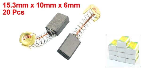 Product Name Carbon Brush Carbon Brush Size (Approx) 15.3 x 10 x 6mm / 39/64" x 25/64" x 15/64"(L*W*T) Wire Length 30mm / 1.2" Material Carbon, Copper, Metal Main Color Dark Gray Net Weight 135g Package Content 20 Pcs x Carbon Brush  - Reviews