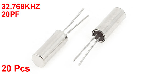 Details20 Pcs 3mmx8mm 32.768K 32.768KHZ Electronic Crystal Oscillators Silver Tone  Product Name Crystal Oscillator Output Frequency 32.768KHZ Frequency Tolerance ±10ppm Load Capacitance 20PF Frequency Stability ± 20ppm Equivalent Resistance 80 ohm Mounting Type SMD No. of Pins 2 Body Size(Each One) 3 x 8 mm/ 0.12" x 0.31"(D*H) Material Metal & Electronic Parts Weight 4g Package Content 20 Pcs x Crystal Oscillator