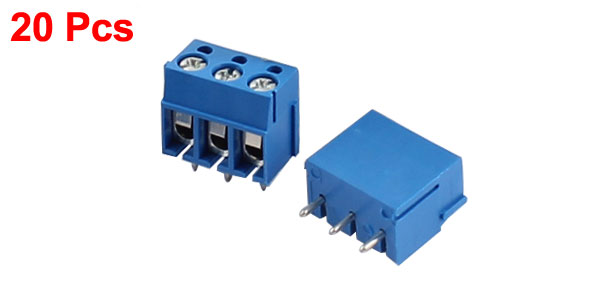 20 pcs 3P Plug-in Screw Terminal Block Connector 5.08mm Pitch Blue