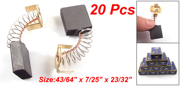 Product Name Carbon Brush Model No. 999044 Carbon Brush Size 17 x 7 x 18mm / 43/64" x 7/25" x 23/32" (L*W*H) Total Length 46mm / 1.8'' (When Spring Stretching) Material Carbon & Metal Color As Picture Show Net Weight 111g Package Content 20 Pieces of Carbon Brush - Reviews