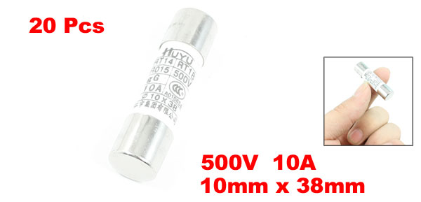 Product Name Ceramic Fuse Model RT14 RT18 RO15 Type Fast Blow Rated Voltage 500V Rated Current 10A Total Size 10 x 38mm/ 0.4" x 1.5" (D*L) Material Metal, Ceramic, Electronic Parts Main Color White, Silver Tone Weight 137g Package Content 20 x Ceramic Fuses - Reviews