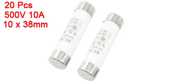 Product Name Ceramic Fuse Model R015 RT14 RT18 RT19 gG10A Type Fast Blow Rated Voltage 500V Rated Current 10A Total Size 10 x 38mm/ 0.4" x 1.5" (D*L) Material Metal, Ceramic, Electronic Parts Main Color White, Silver Tone Weight 115g Package Content 20 x Ceramic Fuses - Reviews