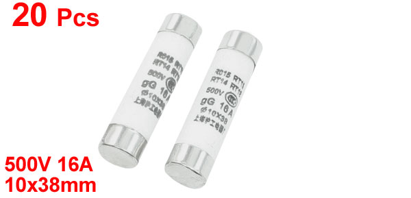 Product Name Ceramic Fuse Model R015 RT14 RT18 RT19 Type Fast Blow Rated Voltage 500V Rated Current 16A Total Size 10 x 38mm/ 0.4" x 1.5" (D*L) Material Metal, Ceramic, Electronic Parts Main Color White, Silver Tone Weight 125g Package Content 20 x Ceramic Fuses - Reviews