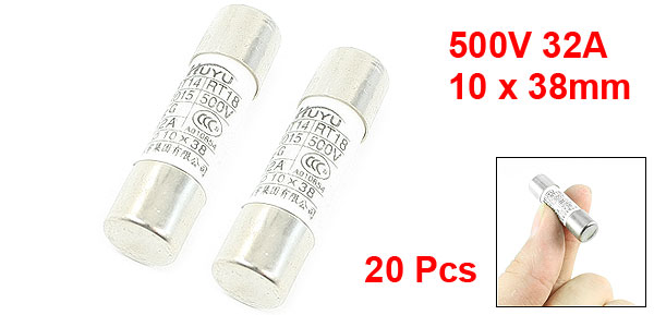 Product Name Ceramic Fuse Model RT14 RT18 RO15 Type Fast Blow Rated Voltage 500V Rated Current 32A Total Size 10 x 38mm/ 0.4" x 1.5" (D*L) Material Metal, Ceramic, Electronic Parts Main Color White, Silver Tone Weight 149g Package Content 20 x Ceramic Fuses - Reviews
