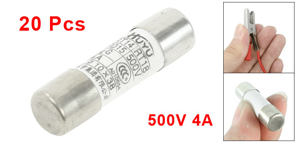 Product Name Ceramic Fuse Model RT14 RT18 RO15 Type Fast Blow Rated Voltage 500V Rated Current 4A Total Size 10 x 38mm/ 0.4" x 1.5" (D*L) Material Metal, Ceramic, Electronic Parts Main Color White, Silver Tone Weight 146g Package Content 20 x Ceramic Fuses - Reviews