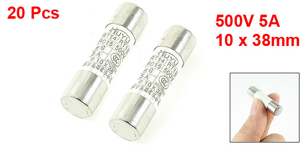 Product Name Ceramic Fuse Model RT14 RT18 RO15 Type Fast Blow Rated Voltage 500V Rated Current 5A Total Size 10 x 38mm/ 0.4" x 1.5" (D*L) Material Metal, Ceramic, Electronic Parts Main Color White, Silver Tone Weight 131g Package Content 20 x Ceramic Fuses - Reviews