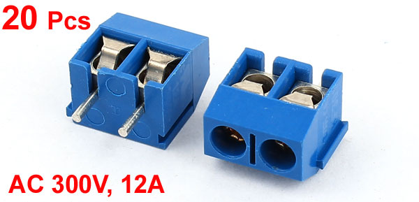 Product Name Screw Terminal Block Model KF301-2P Material Plastic Rated Value AC 300V, 12A Fit Cable Model 14-22AWG Pin Number 2 Pitch 5.08mm/0.2" Total Size 13 x 10 x 8mm/ 0.51" x 0.4" x 0.3" (L*W*H) Color Blue Weight 32g Package Content 20 x 2P Screw Teminal Blocks - Reviews