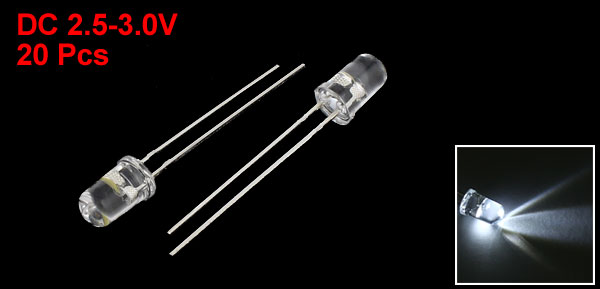 20 Pcs 5mm Clear Head Auto Flash White LED Lamp Light Emitting Diodes DC 2.5V-3V