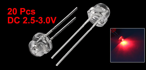 20 Pcs 5mm Diameter Clear Head Red LED Lamp Light Emitting Diode DC 2.5-3.0V