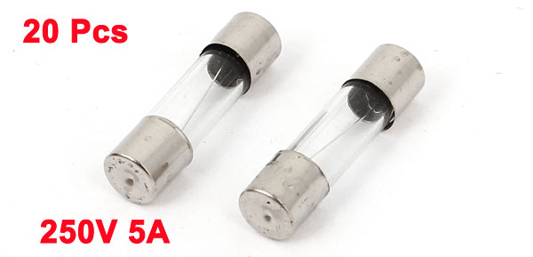 Product Name Glass Tube Fuses Quantity 20 Features Fast Blow(F) Low Breaking Capacity(L) Rated Voltage 250V Rated Current 5A Body Size 5 x 20mm/ 0.2" x 0.8"(D*L) Material Glass, Metal Color Silver Tone, Clear Weight 14g Package 20 x Glass Tube Fuses - Reviews