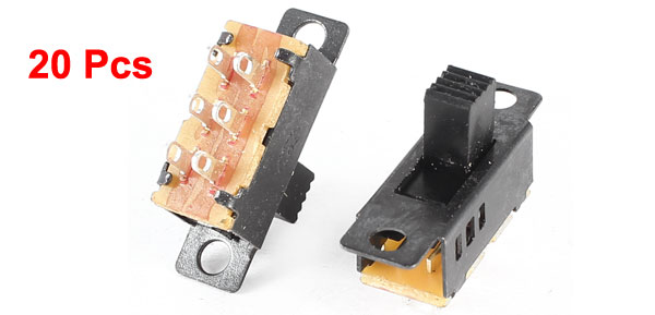 20 Pcs 6 Solder Lug Pin 3 Position ON/OFF/ON DPDT Vertical Slide Switch