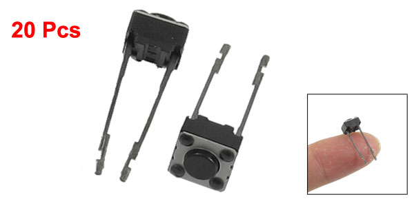 Product Name Tact Switch Contact Type Momentary Contact Dimension 6 x 6 x 4mm / 0.24" x 0.24" x 0.16" (L*W*H) Button Dia. 3.5mm/ 0.14" Pin Pitch 4.5mm/ 0.18" Pin Length 16mm/ 0.63" Material Plastic, Metal, Electric Parts Color Black, Silver Tone, Red Net Weight 6g Package Content 20 x Tact Switches - Reviews