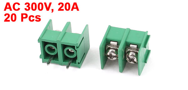 Product Name Screw Terminal Block Model KF7620 Material Plastic Rated Value AC 300V, 20A Fit Cable Model 22-16AWG Pin Number 2 Pitch 7.62mm/0.3" Total Size 16.5 x 16 x 12mm/ 0.65" x 0.63" x 0.47" (L*W*H) Color Green Weight 60g Package Content 20 x 2P Screw Teminal Blocks - Reviews