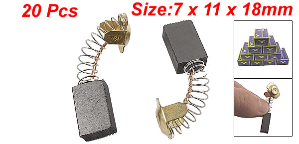 Product Name Carbon Brush Carbon Brush Size 7 x 11 x 18mm / 17/64" x 29/64" x 45/64" (L*W*H) Total Height 47mm / 1.85" (When Spring Stretching) Material Carbon & Metal Color As Picture Show Net Weight 69g Package Content 20 Pieces of Carbon Brush(Non-OEM) - Reviews
