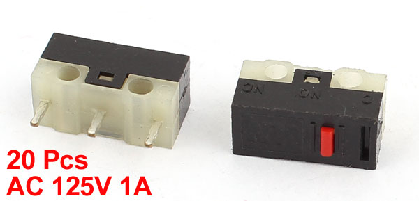 Details20 Pcs AC 125V 1A 3 Pin Terminal 1NO 1NC Momentary Type SPDT Mini Micro Switches  Product Name Micro Switch Voltage & Current 1A/125VAC Poles SPDT Contact Type 1NO + 1NC Action Type Momentary Actuator Type Push Button Terminal Type 3-Pin Terminals Overall Size 1.3 x 0.6 x 1cm / 0.55" x 0.24" x 0.4" (L*W*H) Mounting Hole Dia. 2mm/ 0.08" Mounting Hole Spacing 7mm / 0.28" Material Plastic, Metal Color Black, Silver Tone Total Weight 11g Package Content 20 x Micro Switches
