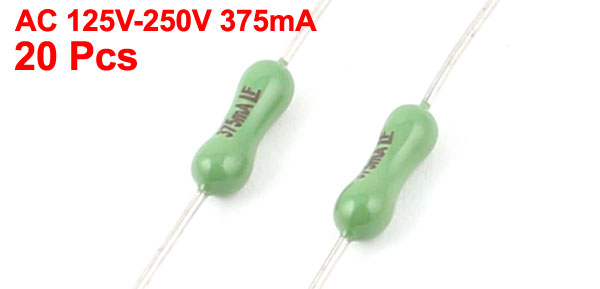 Details20 Pcs AC 125V-250V 375mA Fast Quick Blow Axial Leaded Fuses 3 x 62mm  Product Name Axial Leaded Fuse Material Resin, Metal Type Fast Blow Rated Voltage AC 125V-250V Rated Current 375mA Mounting Type Through Hole Lead Style Axial Total Size 3 x 62mm / 0.1" x 2.4" (D*L) Weight 6g Package 20 x Axial Leaded Fuse