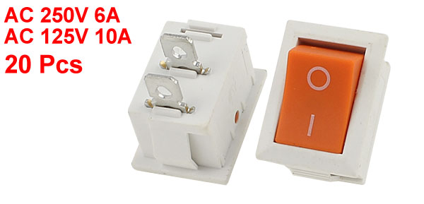 AC 125V 10AOverall Size 25 x 21 x 15mm/1" x 0.8"x 0.6"(L*W*H) Mounting Hole Size 7 x 5mm / 0.3" x 0.2"(L*W) Color White, Orange ,Silver Tone Material Plastic, Metal Net Weight 66g Package Content 20 x Rocker Switch - Reviews