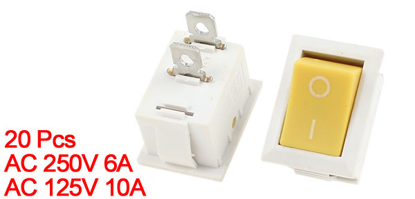 20 Pcs AC 250V/125V 10A/6A 2 Pin KCD1 White Yellow Button Boat Rocker Switch