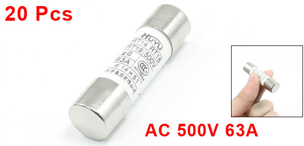 20 Pcs AC 500V 63A RT14 RT18 R016 Fast-blow Acting Ceramic Fuse 14mm x 51mm