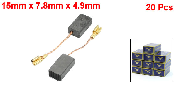 Product Name Carbon Brush Carbon Brush Size (Approx) 15 x 7.8 x 4.9mm / 19/32" x 5/16" x 3/16"(L*W*T) Wire Length 20mm / 0.8" Material Carbon, Metal Main Color Dark Gray Net Weight 69g Package Content 20 Pcs x Carbon Brush - Reviews