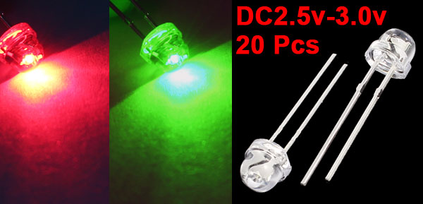 20 Pcs Clear Straw Hat 5mm Red Green LED Lamp Light Emitting Diodes DC 2.5V-3.0V